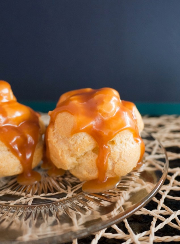Профитроли с заварным кремом и карамельным соусом